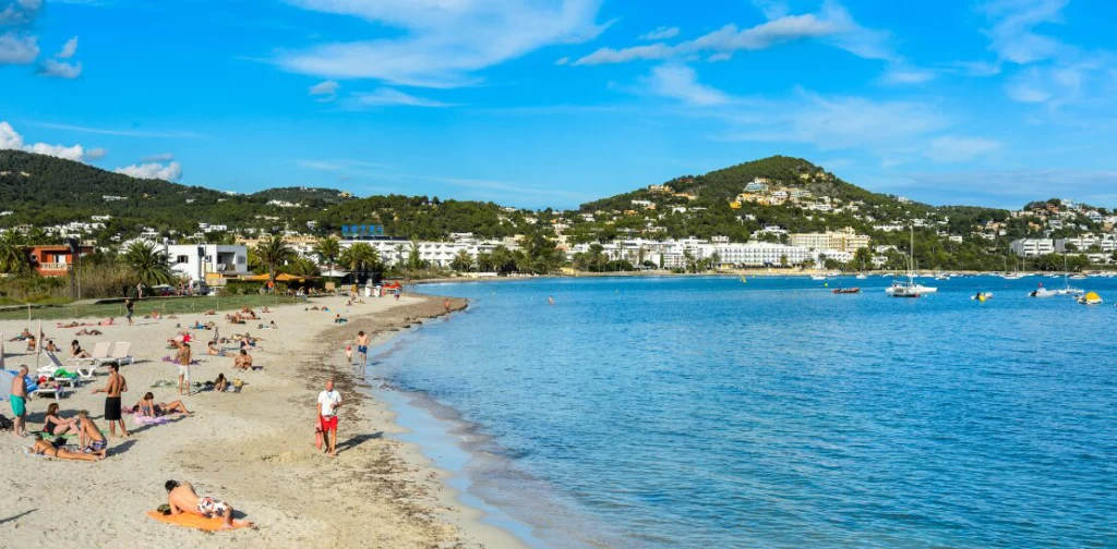 Just a few miles outside Ibiza Town, Cala Talamanca stretches gracefully along the coastline, offering a serene retreat from the island’s vibrant capital. This 900-metre crescent of pale yellow sand meets tranquil turquoise waters, creating an idyllic setting for beachgoers seeking relaxation without venturing too far from the town. With its soft golden sands and crystal-clear waters, Cala Talamanca is renowned for its shallow and calm swimming conditions, ideal for children and adults alike. Easily accessible by car, bus, or ferry from Ibiza Town, or a leisurely 20-minute stroll along the beachfront past Marina Botafoch, Cala Talamanca offers convenience without compromising on its natural beauty. As the longest beach in the town, it boasts all the amenities one could desire: from vibrant beach bars and restaurants to renowned beach clubs.