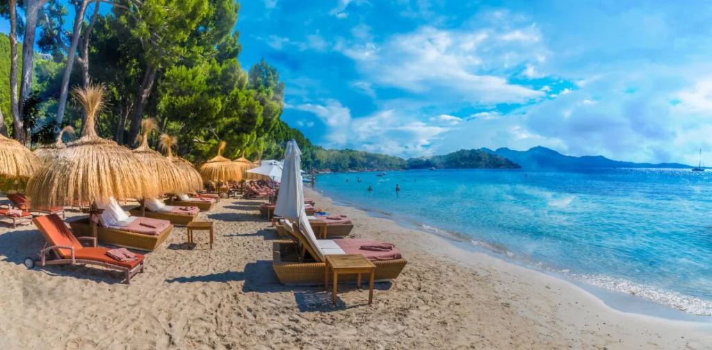 Whether you’re searching for the best beach in Mallorca to unwind on powdery white sands or a secluded bay, this Balearic gem has it all. With over 50 km of pristine sands and hidden rocky shores, Mallorca offers a beach experience tailored to every preference – whether you’re seeking child-friendly spots, romantic hideaways, secluded natural gems, or vibrant coastal towns. Unlike its party-centric counterpart, Ibiza, Mallorca opts for a more laid-back approach, embracing the allure of daytime beach clubs, where you can sip on refreshing drinks, sway to music, and soak in the chilled seaside atmosphere. Whether you’re unwinding on a sun-lounger with a cool beverage, indulging in grilled fish at a charming chiringuito, or simply basking in the beauty of white sands against the azure Mediterranean sea, Mallorca has something special in store for you. So, join us as we explore the best beaches in Mallorca for your next holiday getaway!
