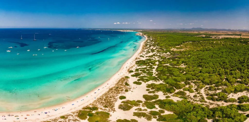 Another strong contender for the best beach in Mallorca, S’Amarador is a secluded paradise within Mondrago Natural Park. As part of the nature reserve, this beach boasts natural sand dunes, forests, and rocky coves, providing the perfect setting for relaxation. With its calm, shallow waters and expansive sands, S’Amarador is a great spot for families and nature lovers alike. While access is limited to a car, the journey is well worth it for a day of unwinding in paradise. S’Aramador has previously been elected best beach in Europe so it’s not one to miss!