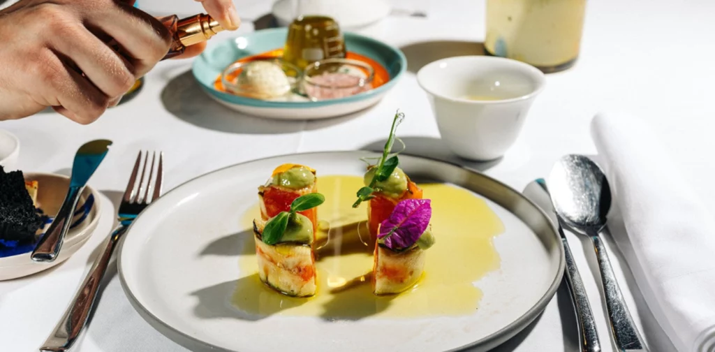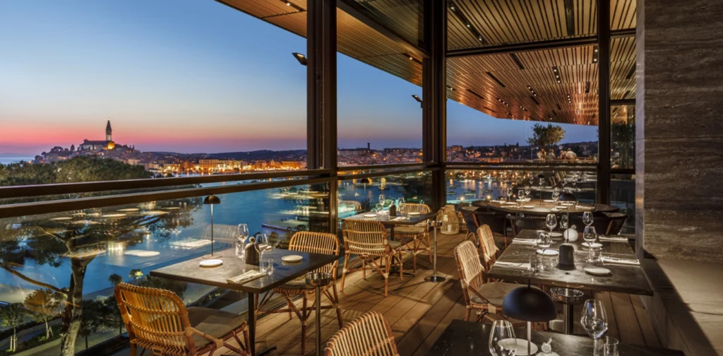 Set on the fifth floor of Rovinj’s luxurious Grand Park Hotel, Cap Aureo offers a Michelin-starred experience from chef Jeffrey Vella. Known as a “vegetable-loving place,” it celebrates Istria with a 20-course tasting menu inspired by seasonality and local flavours. Expect inventive dishes such as watermelon carpaccio, squid cacio e pepe, summer carrot tartare with caviar, local lamb, and St Joseph’s figs. The wine list highlights Croatian winemakers, sparkling wines, vintage champagnes, and regional favourites. With stunning views over the marina and old town, Cap Aureo is a must for fine-dining enthusiasts. Reservations are essential.
