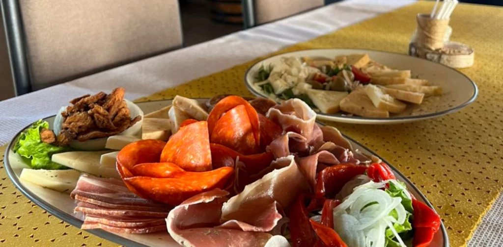 Hidden in the village of Most, just a few kilometres from Momjan, Stari Podrum is a must for meat lovers. Set beside the Argili creek with views of Momjan’s medieval castle, the rustic tavern is surrounded by vineyards and olive groves, giving it an authentic countryside charm. Inside, the cosy dining room features a large open fireplace, while the outdoor terrace provides extra space in warmer months. The menu showcases hearty traditional Istrian dishes with a twist: Fiorentina steak, beef cuts, homemade pastas, and seasonal fritaja. Don’t miss their famous rösti-style potatoes or fresh garden salads, often served with truffle accents. Family-run and always buzzing with locals, Slovenians, and Italians alike, this welcoming spot offers generous portions, warm service, and a truly homely feel. Reservations are essential.