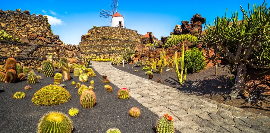 To experience yet another side of Lanzarote, a visit to the Jardin de Cactus is highly recommended. Located in Guatiza, this botanical garden is home to over 4,000 species of cacti from around the world. Designed (again!) by César Manrique, the garden is built within an old quarry, reflecting his dedication to sustainable and eco-friendly design. As you wander along the winding paths, you’ll encounter a collection of cacti, ranging from towering, spiky mammoths to delicate flowering species. Despite being a lesser-known attraction, the garden’s striking visuals and peaceful atmosphere make it a hidden gem well worth exploring. And, of course, there’s a cafe on-site for visitors to relax and enjoy a drink after their visit!