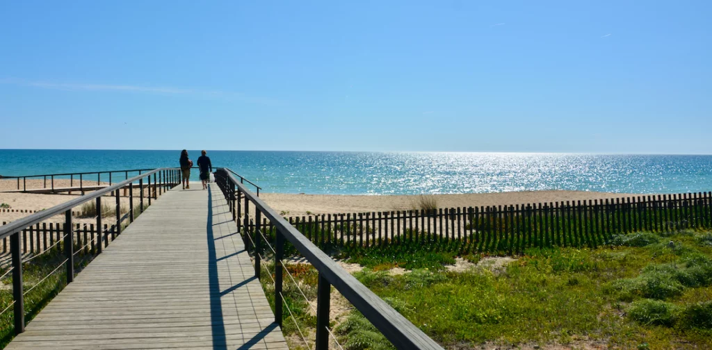 Praia do Trafal is a secluded beach nestled between Vilamoura and Quarteira. Accessible via a charming wooden footbridge, this hidden cove offers a sense of tranquillity and privacy.