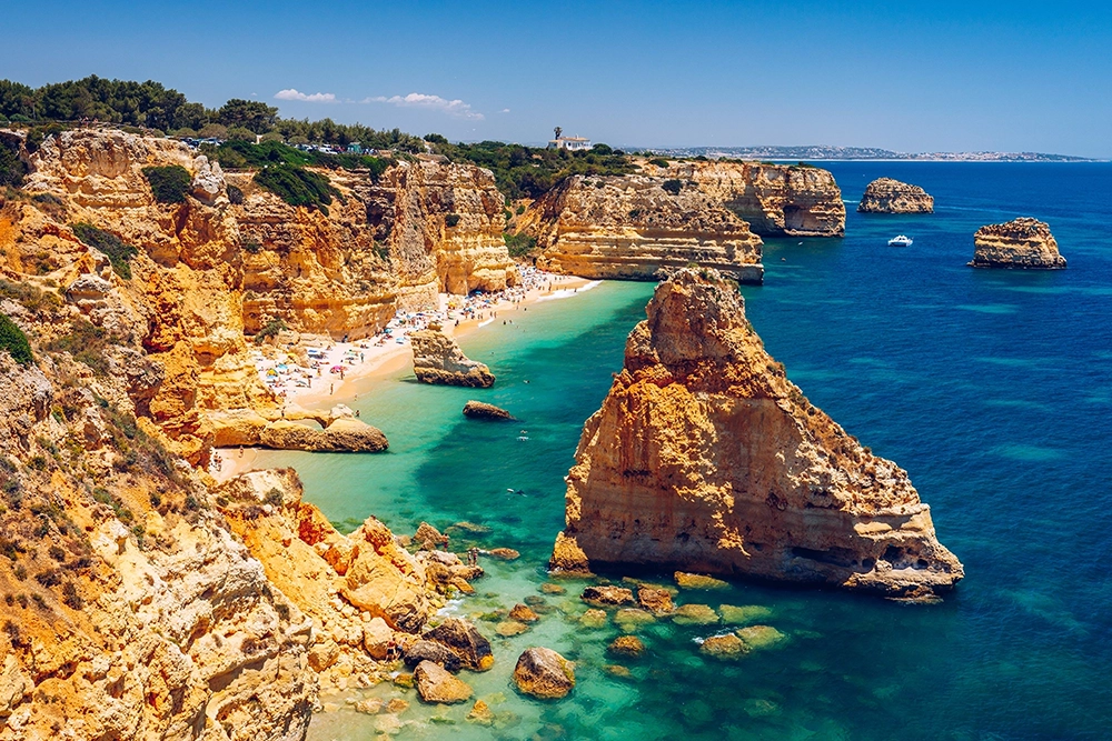 For those seeking a more secluded escape, Praia da Marinha, a short drive from Boliqueime, is a hidden gem. Its rugged beauty, intimate coves, and clear azure waters make it a haven for nature lovers and snorkelling enthusiasts.